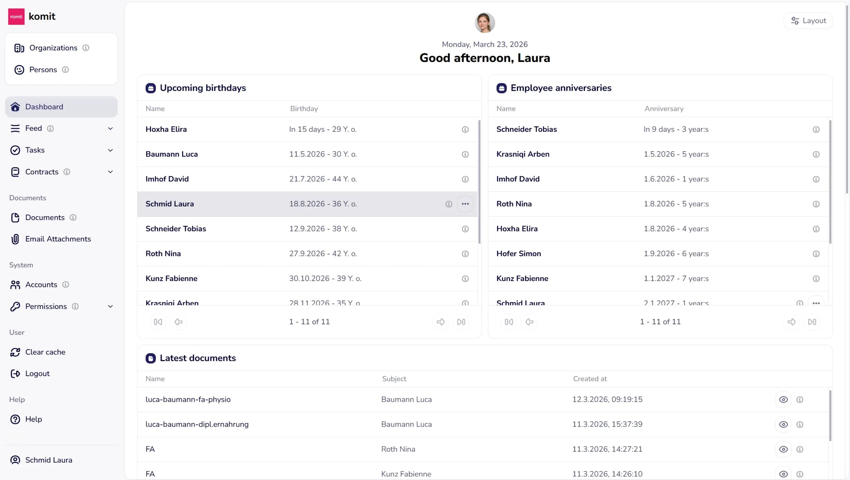 Komit brings together contracts, documents, and personnel in one clear structure – including deadlines, responsibilities, and tasks.